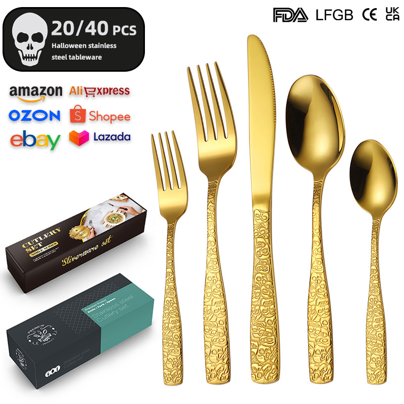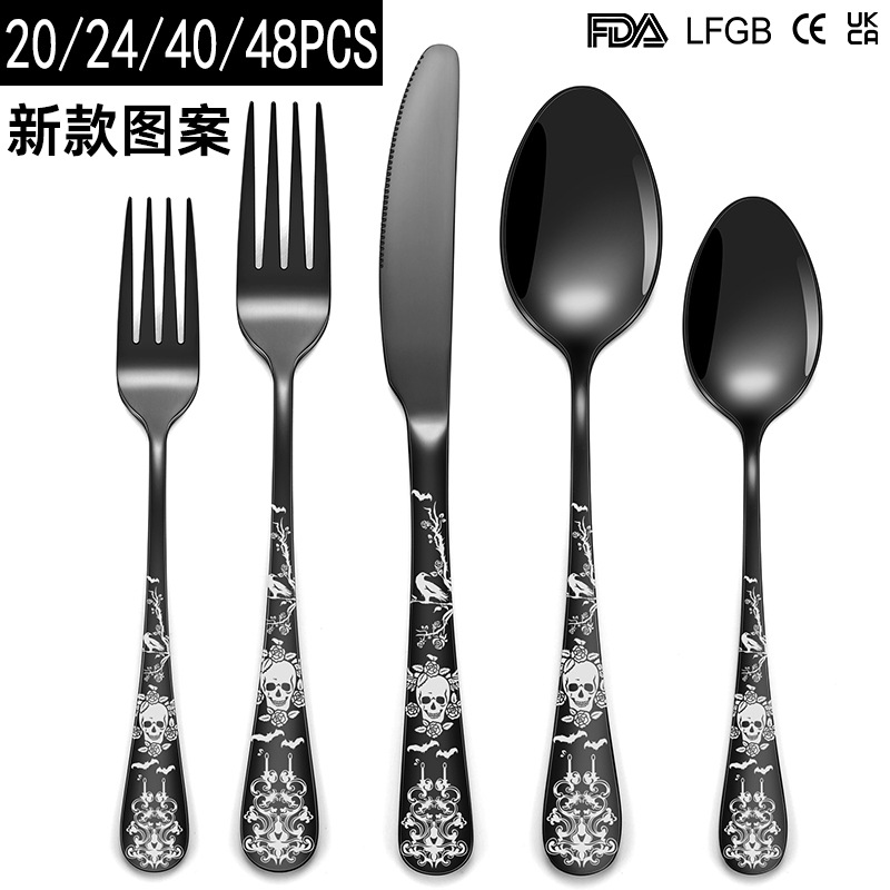 ハロウィーン頭蓋ステンレス食器20/40セット家庭用ホテル洋食ステーキナイフフォークスプーンセット