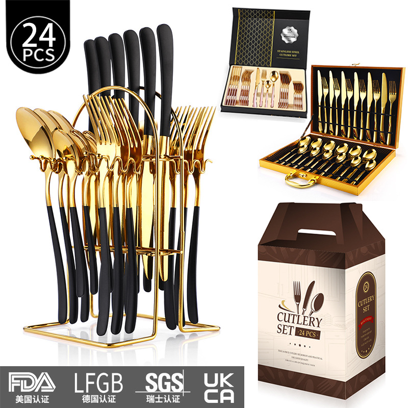 月光ステンレス食器24点セットホテル洋食ステーキナイフフォークスプーンセット家庭用西洋食器棚