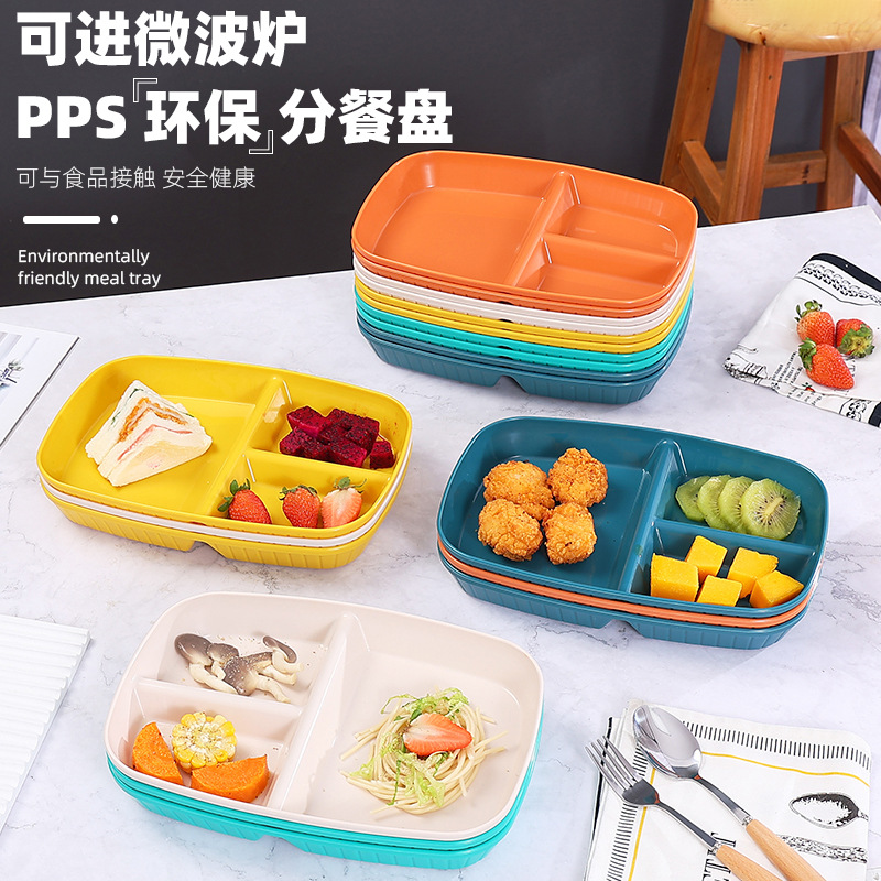 クロスボーダー三格食事皿ダイエット皿家庭用児童学生朝食皿商用プラスチック角型ファストフード皿