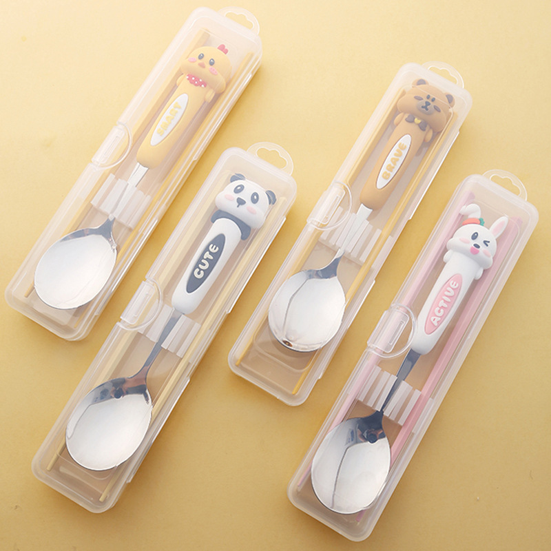304ステンレス子供スプーン箸携帯食器かわいい漫画スプーン箸学生食事セット収納ケース