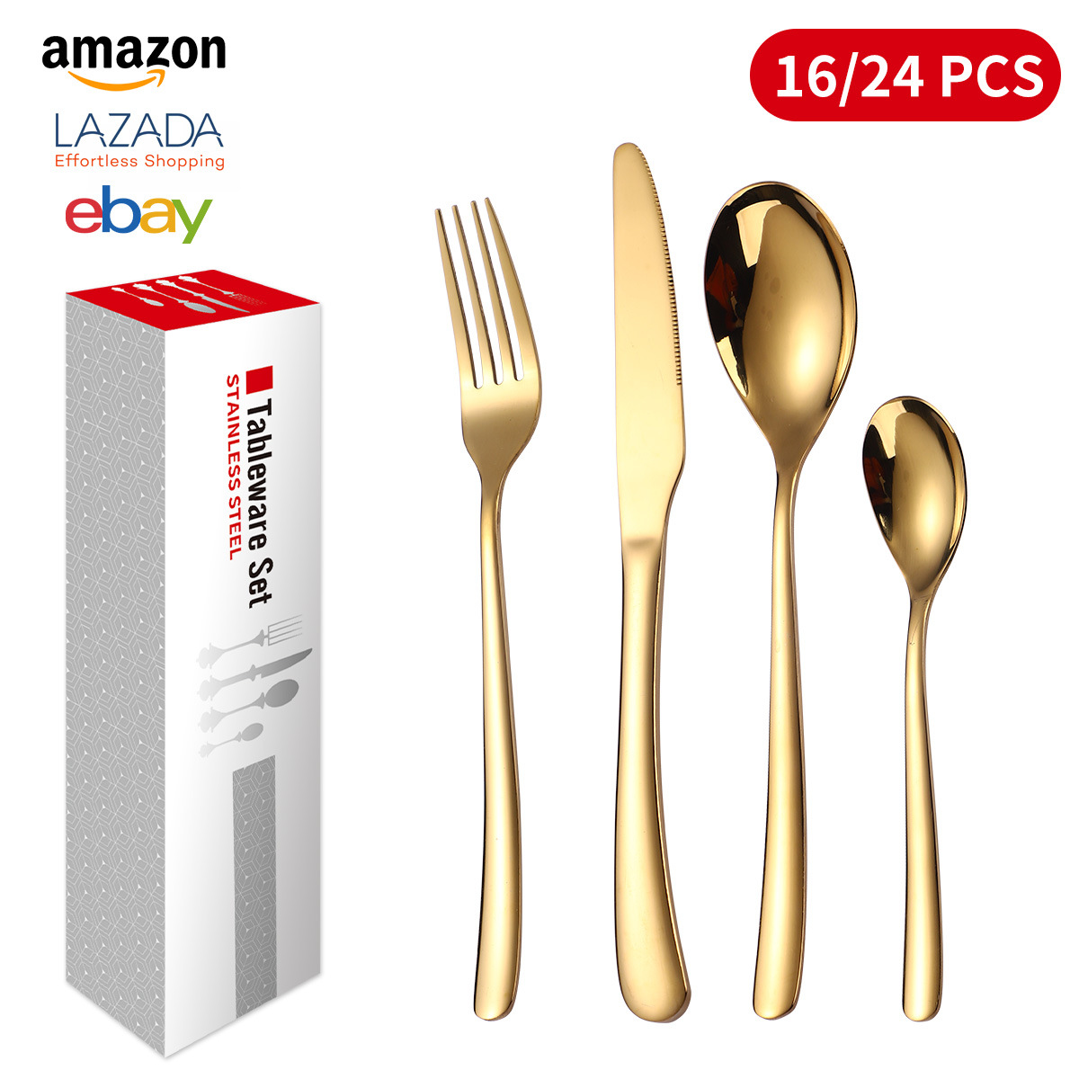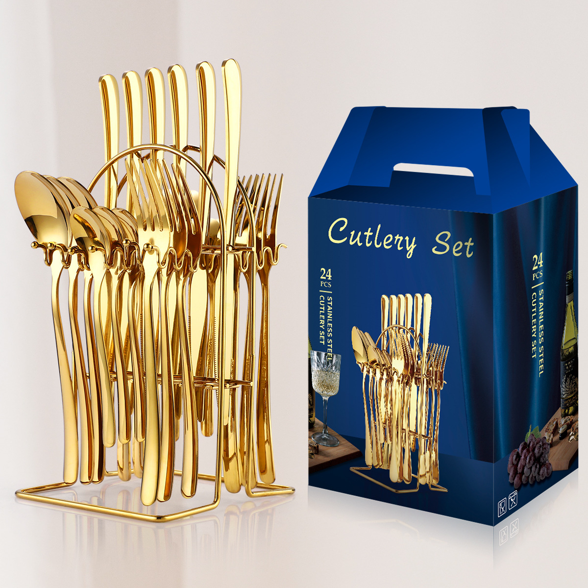 国境を越えた供給源ポルトガル24点セットステンレスナイフフォークスプーンセット塗装金メッキ食器ギフトボックスアマゾン