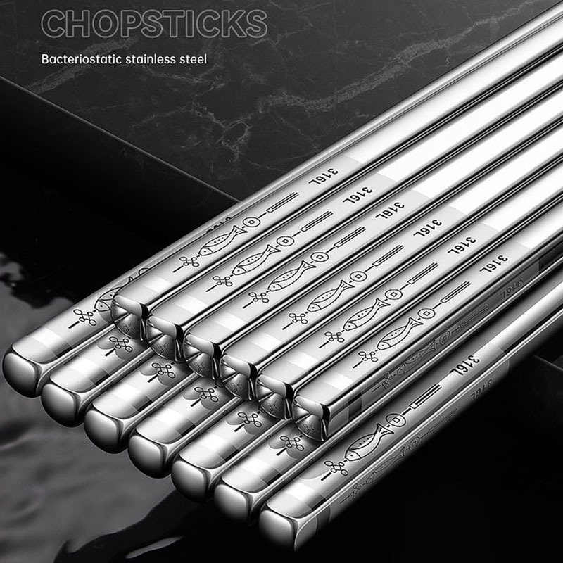 316l/304ステンレスの魚の箸の厚い滑り止めの家庭用断熱中国式のレーザーの正方形の雄の箸の贈り物