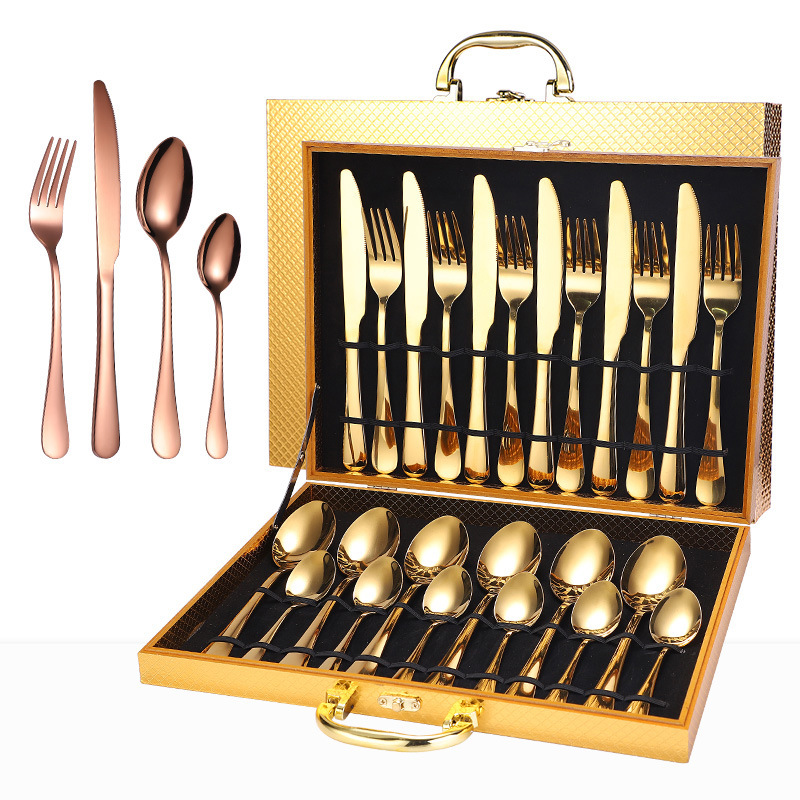 アマゾン製品ステンレス食器24点セット1010ナイフフォークスプーン木箱ギフトボックスクロスボーダー