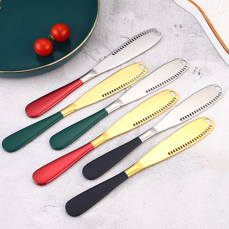 430ステンレスチーズナイフ多機能穴付きクリームバターナイフパンジャムナイフチーズバターナイフ