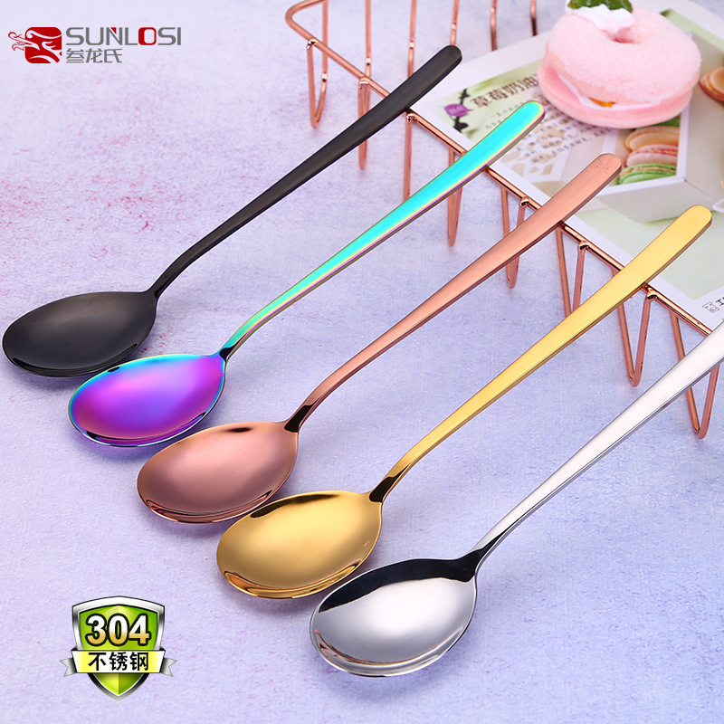 メーカー卸売り304ステンレススプーン食器韓国式スプーン長柄スプーンファッションチタンメッキ金スプーンロゴ