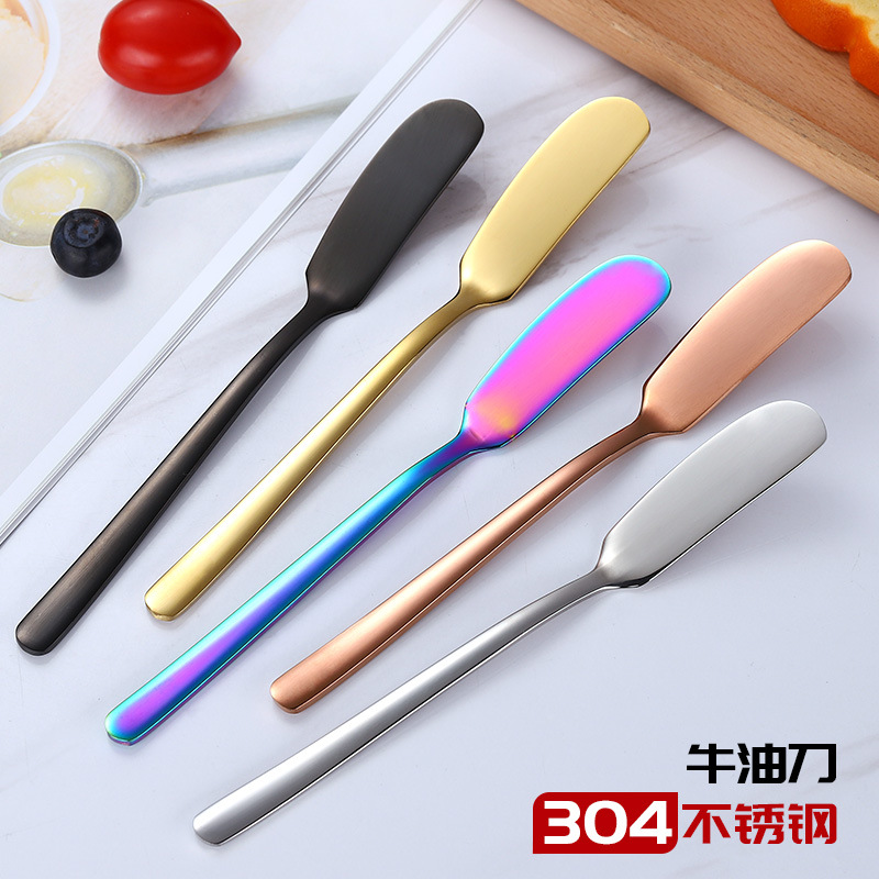 304ステンレスのバターナイフの長い取っ手のジャムのバターは刀の洋食の食器のクリームを塗って花の刀のメーカーを表装して卸売りします。