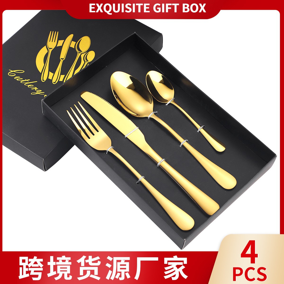 アマゾンクロスボーダーセット1010ステンレス食器ナイフフォークスプーン4点セットチタンメッキカラーブラックゴールド