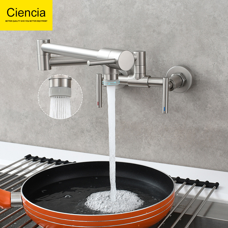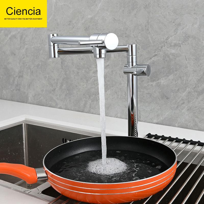 銅クロムメッキ折り畳み式壁式キッチン蛇口自在回転冷水ポット蛇口水槽浴槽蛇口