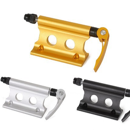 自転車のフロントフォークを外して荷物棚を固定します。自動車SUVは携帯部品を改造します。