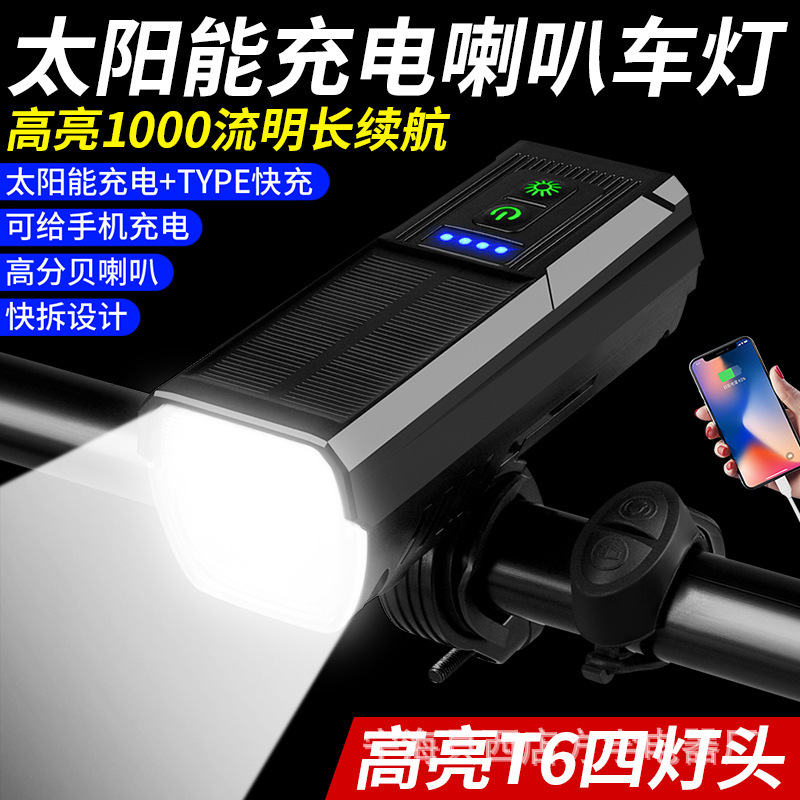 新型高流明自転車ヘッドライト太陽エネルギー自転車ライト4t 6超亮遠近光自転車ライトTYP-C
