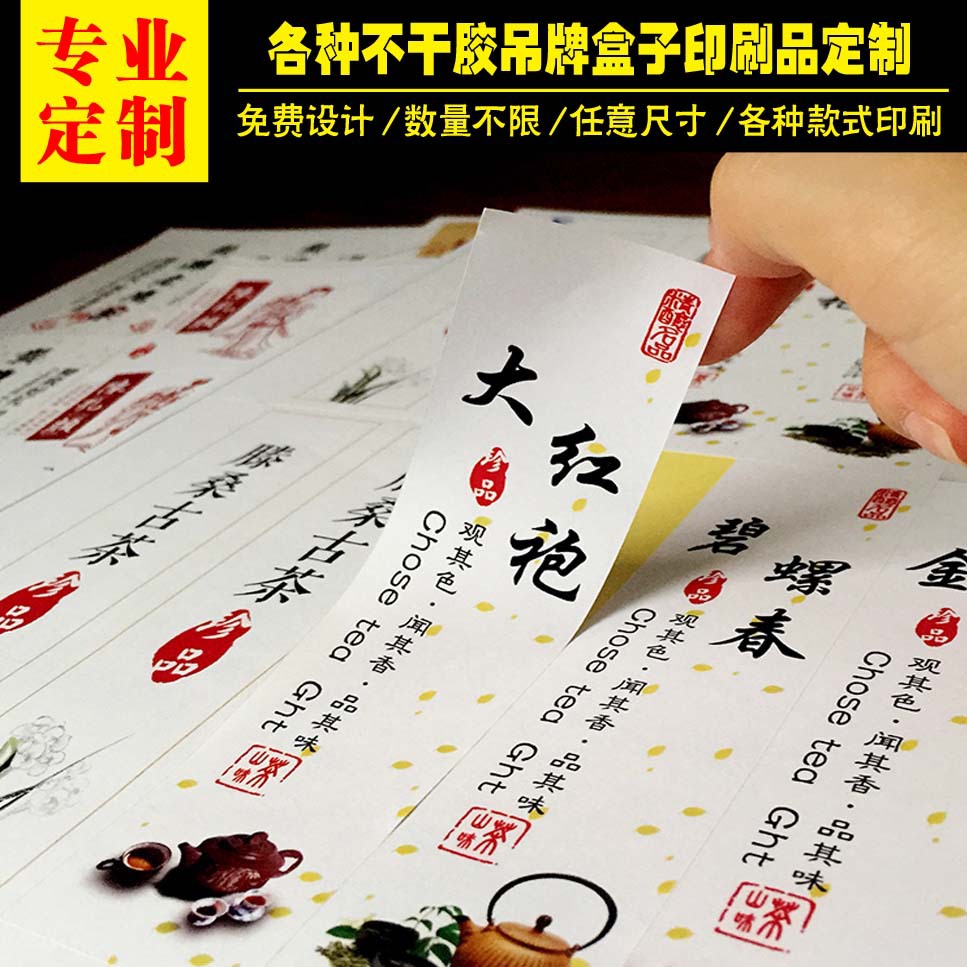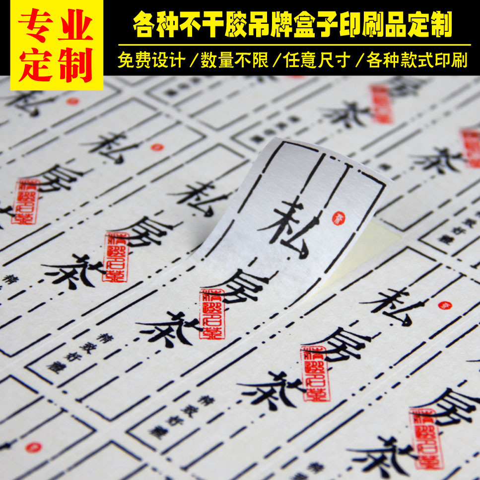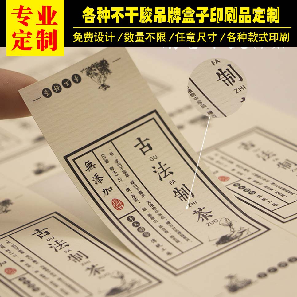 カスタム美紋紙不乾性カスタム茶葉不乾性ラベルカスタム特殊紙ラベルロゴ印刷ラベル