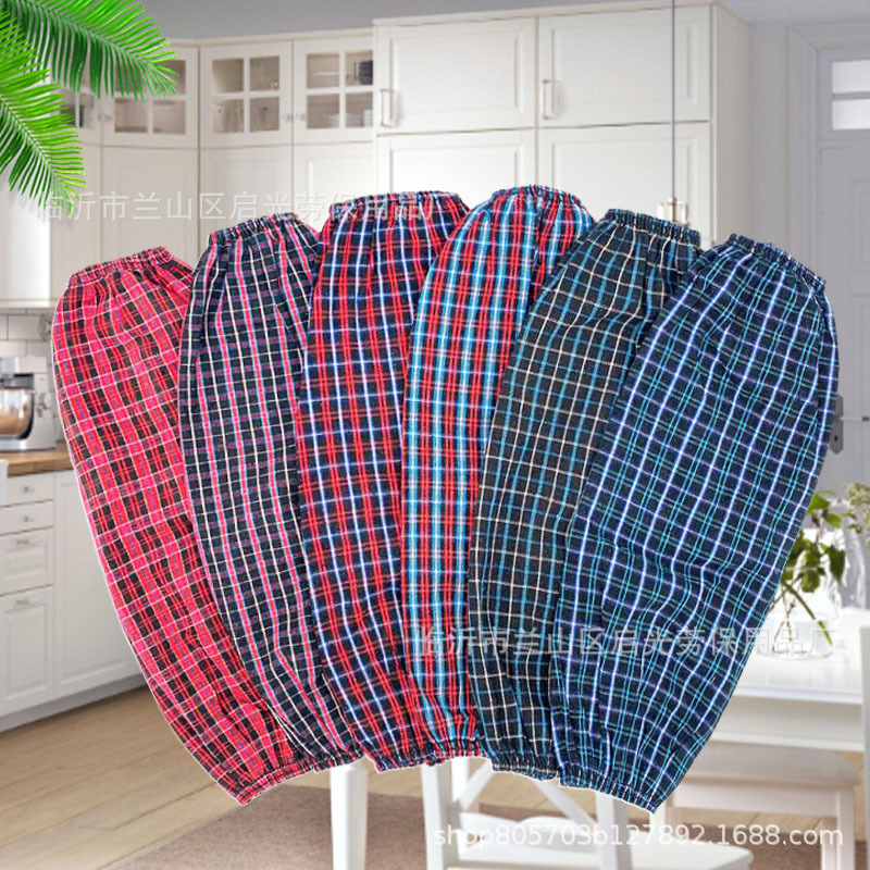 方眼の綿布の袖の頭の労働保護の卸売りは長いストライプの通気性の2針の成人の4針の袖の頭を厚くします。