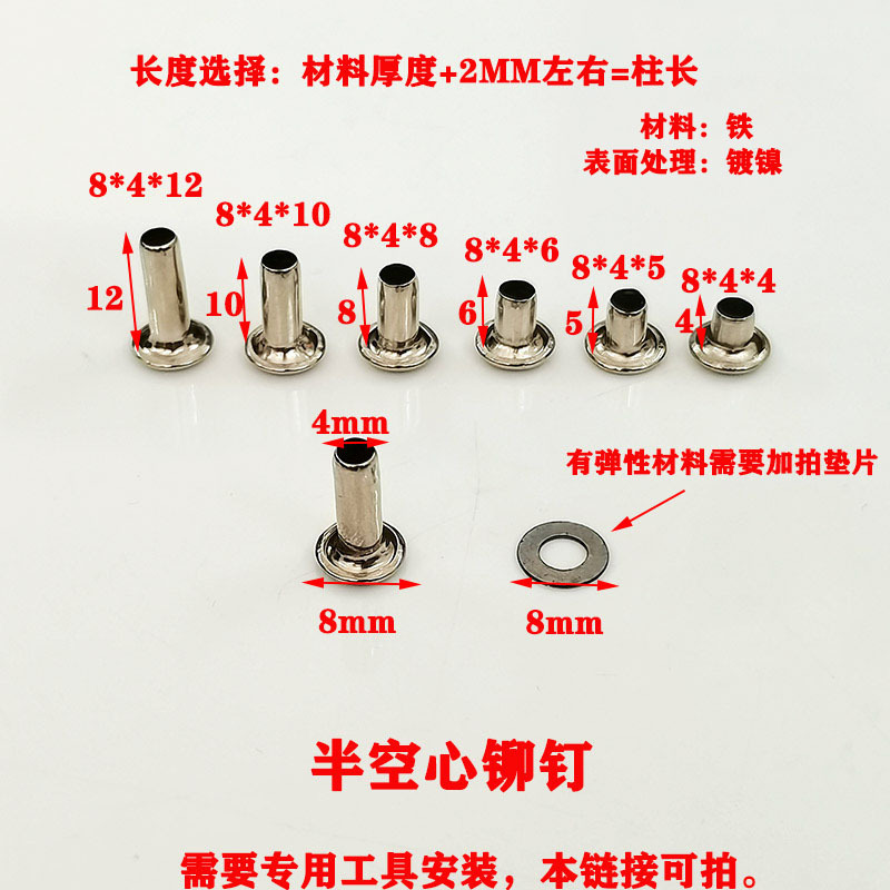 ニッケルメッキ中空釘平円頭バインダーピンピン半中空片面金属リベット活動子母固定部品