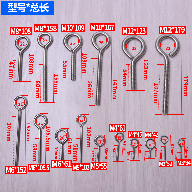 ステンレス304羊眼ねじボルト吊りリング円ねじフック付きねじM3/4/5/6/8/10/12