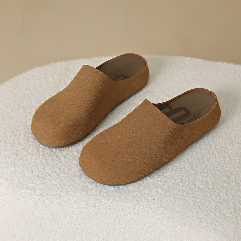 レトロな起爆包頭ベーケンスリッパ女2024秋の新型百合平底怠け者は足を半分に引っ張った