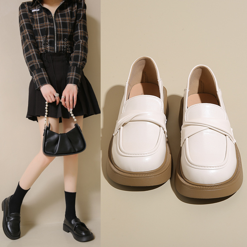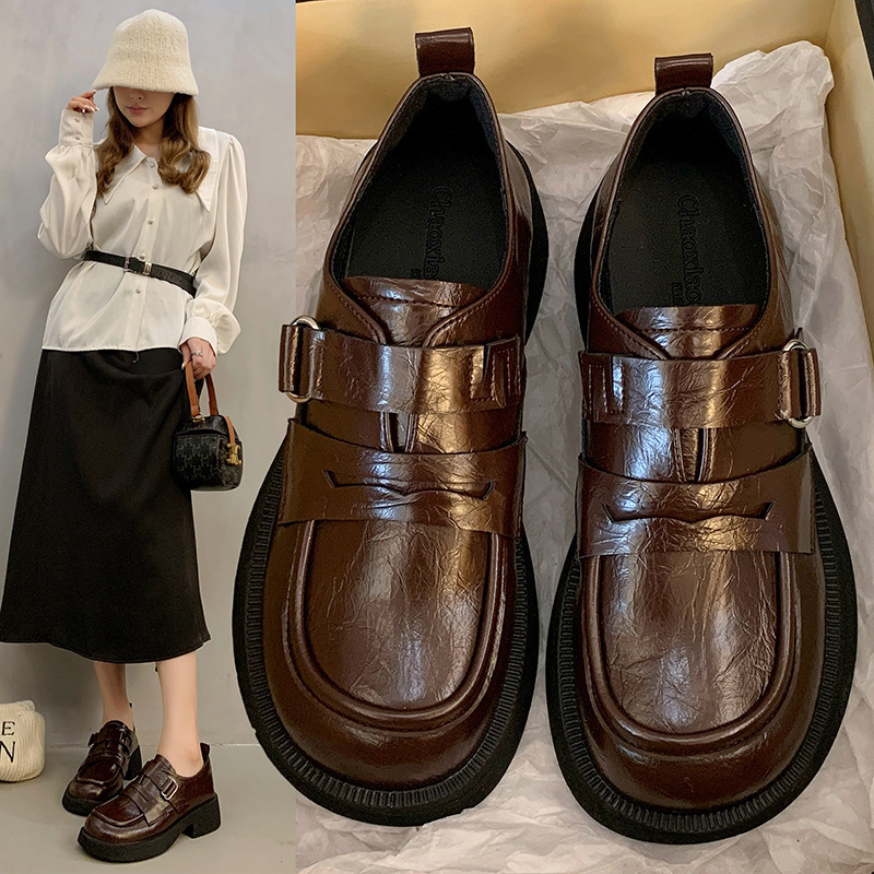 2024春秋の小さい靴の女性の英倫の風は粗くて楽福の靴の優しい風とスカートの靴の学院の風と一緒に漕ぎます。