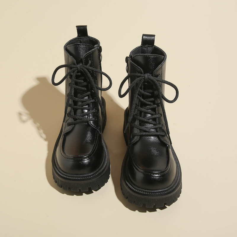 レトロな砂の皮を磨いた後にファスナーのやせている靴の2024秋の新型の中筒の丸い頭のヨーロッパ駅のファッションのマーティンの靴