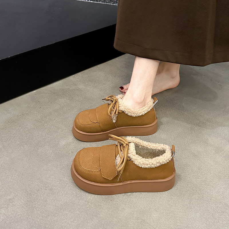 2023新型ネット紅女靴秋冬毛靴平豆靴学生韓国版ファッションベルベット綿靴女