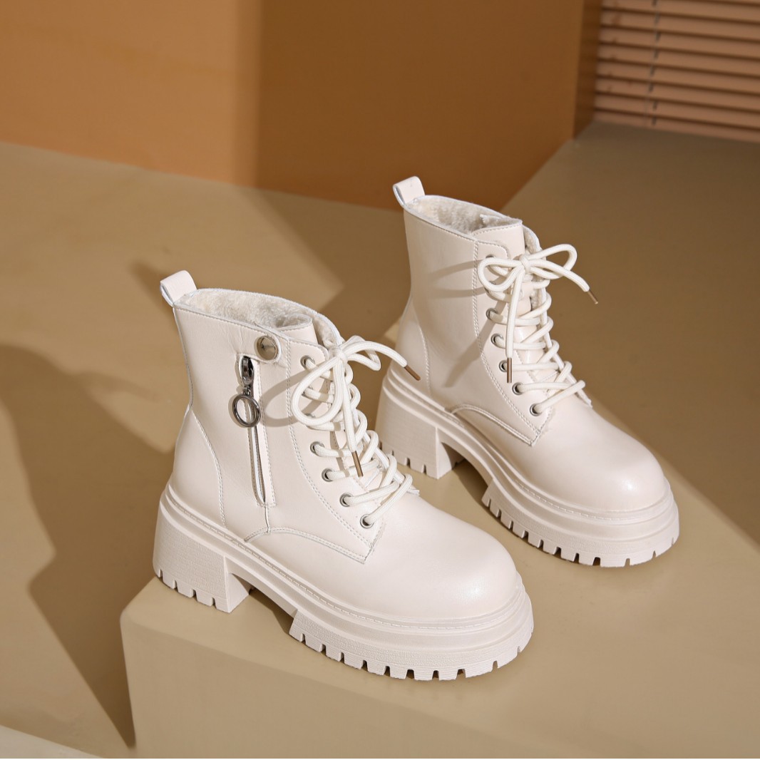 マーティンブーツの女性の白い2024年の新しい秋冬のベルベットins英倫風は厚い底の小さい子のショートブーツを合わせます。