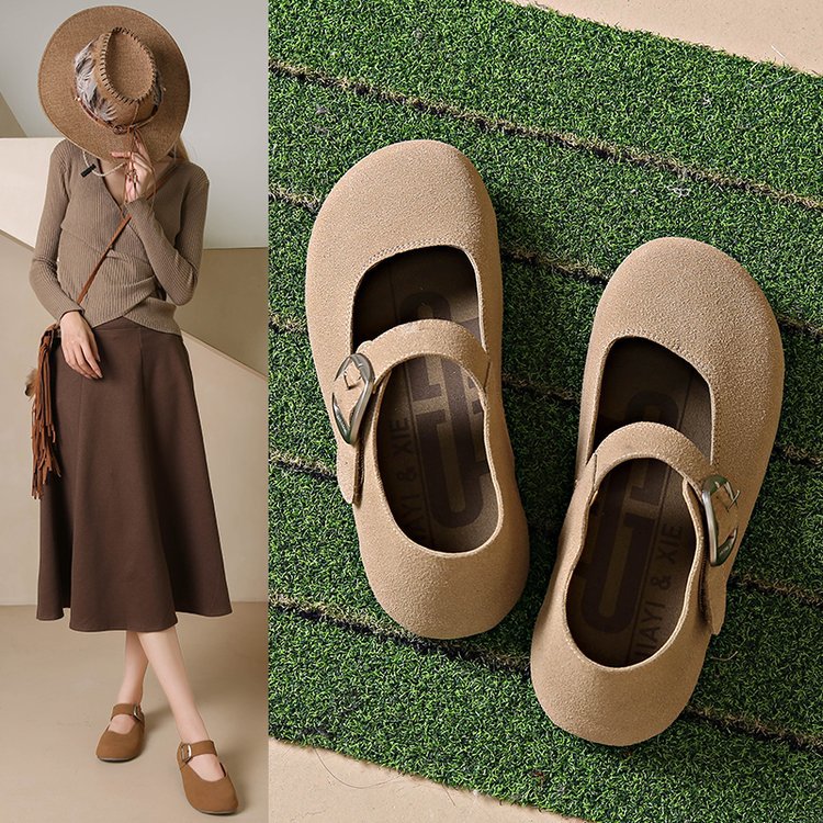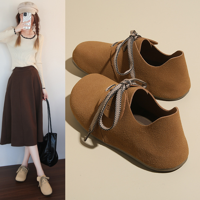 快適な韓流百合本革ベーケン靴2024韓国版カジュアルシューズファッション靴シュークリームメアリー珍靴婦人靴
