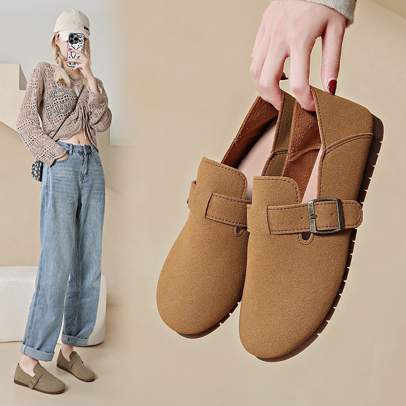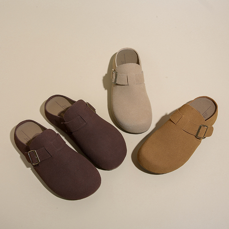 レトロな起爆包頭ベーケンスリッパ女2024秋の新型百合平底怠け者は足を半分に引っ張った