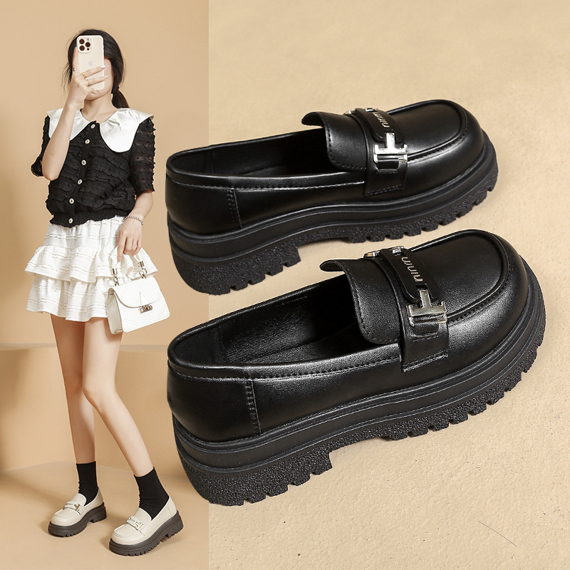 楽福靴女2024新作春の厚い底の復古の足は小さい靴の英倫風の黒色の制服jkの靴を漕ぎます。