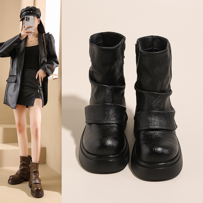 ショートブーツの女性の平底のマーティンの靴の2024の新型の春のチェルシーのやせている靴の英倫の風の方の頭の白い女性の靴