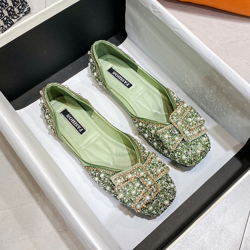 2024春の新しいファッションの水ドリルの平底の浅い口の夏の秋の靴の1足はカジュアルな女性の靴の豆の靴の女性の潮を漕ぎます。