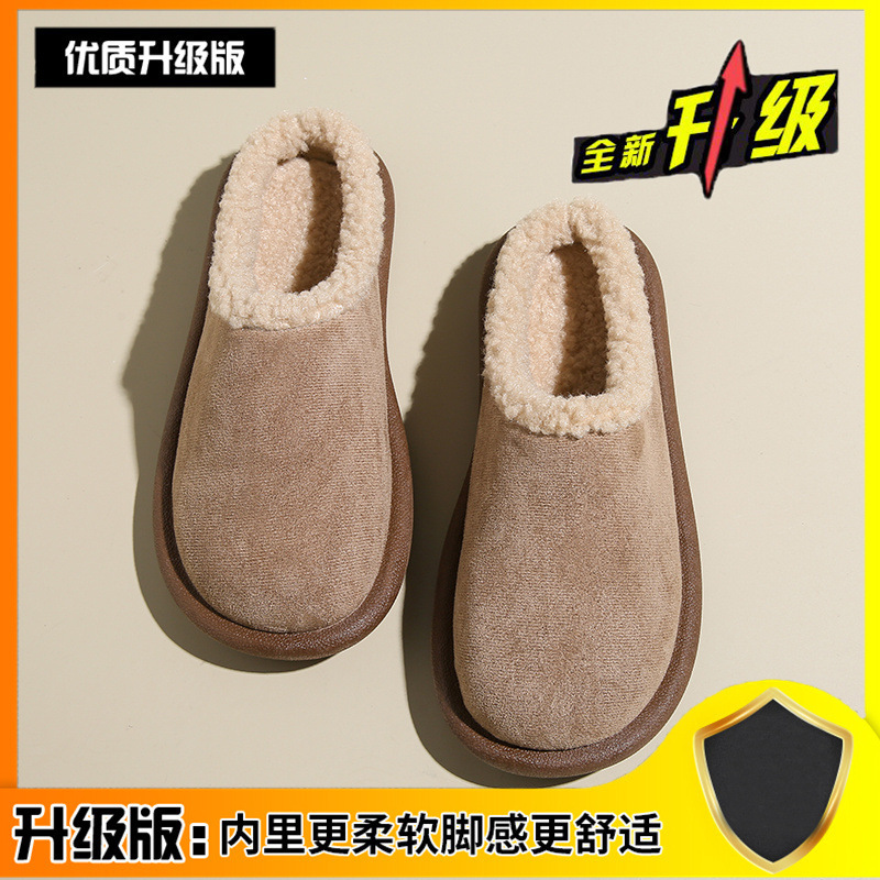 2024国境を越えた対外貿易の新しい家庭ファッション純色クロス毛羽スリッパ女性秋冬保温厚い底スリッパ