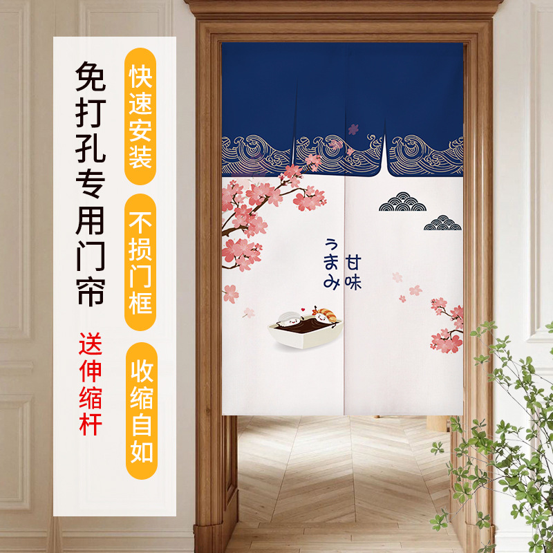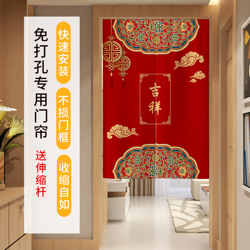 中国風のお祝いキッチンドアカーテンパーティションカーテン寝室ルーム伸縮ロッドバスルーム家庭用パンチフリー2024新モデル