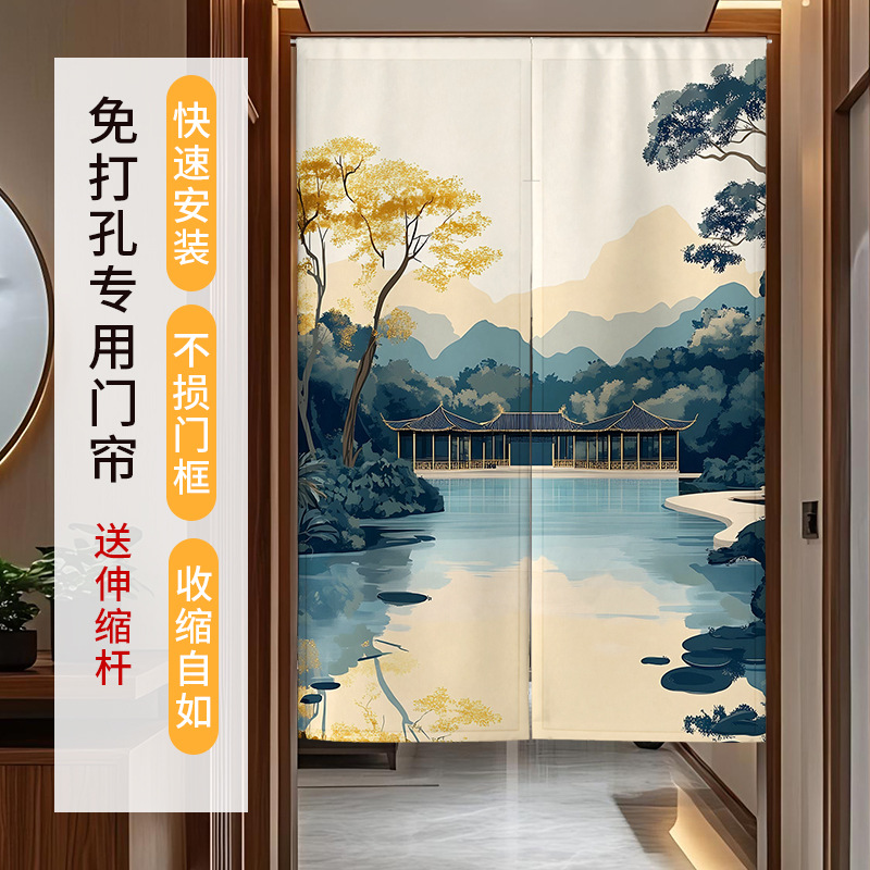 2025新型ins布芸のれんはカーテンを遮断して穴を開けない家庭用寝室の台所でカーテンを隠してトイレをカスタマイズする