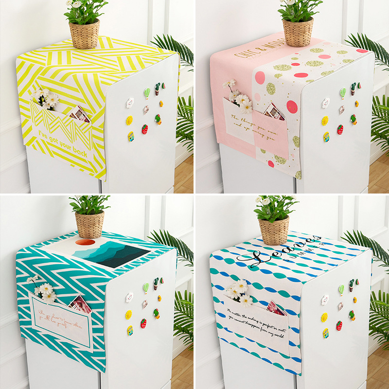 シングルドア冷蔵庫蓋布起爆北欧ins風布芸防塵布洗濯機防水防油綿麻蓋巾