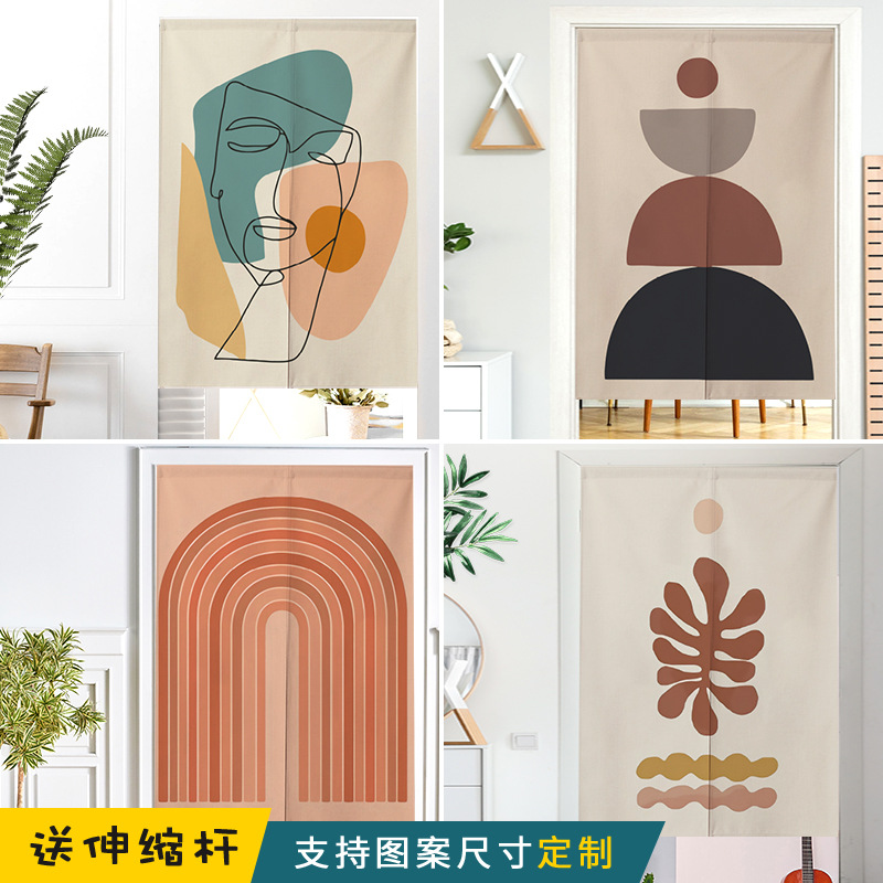 北欧ins布芸抽象手描き油絵綿麻のれん寝室キッチン遮断カーテントイレ遮蔽カーテン