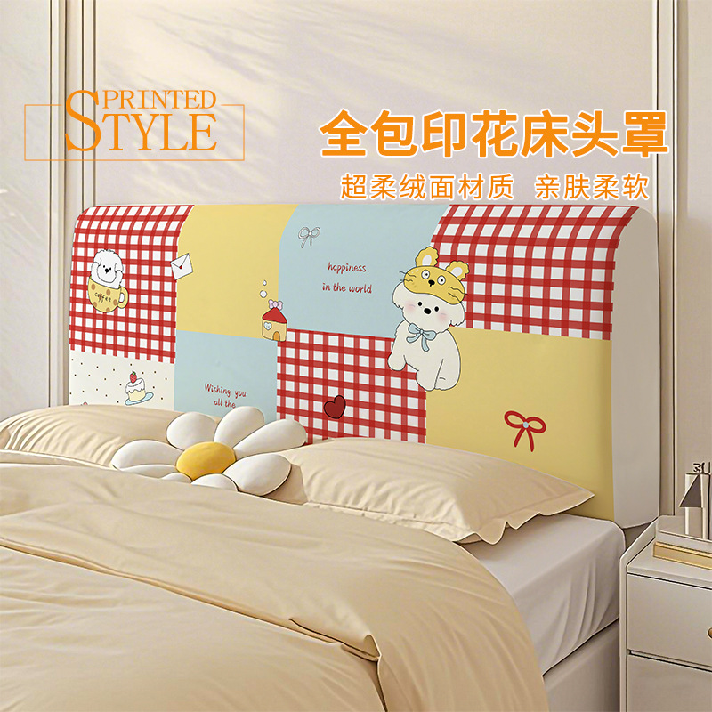 メーカー直販全包ベッドヘッドカバー軟包プリントベッドヘッドカバーシンプルな木製ベッド防塵カバー弾力クッション