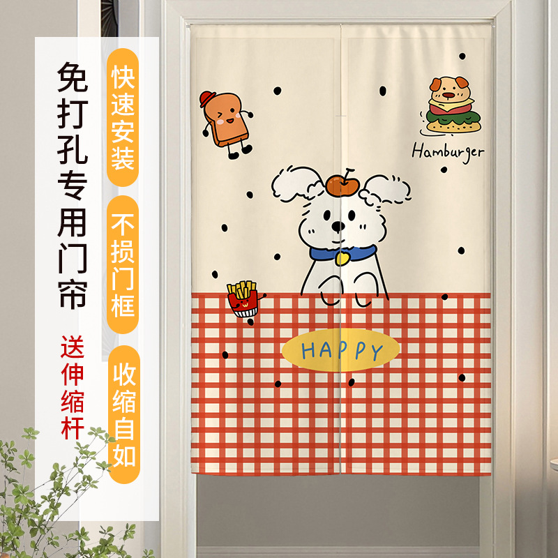 2025新型ins布芸のれんはカーテンを遮断して穴を開けない家庭用寝室の台所でカーテンを隠してトイレをカスタマイズする