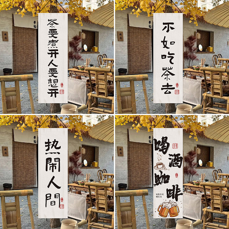 中国風囲炉煮茶装飾布ネット赤写真カード背景雰囲気配置屋外キャンプ看板壁布