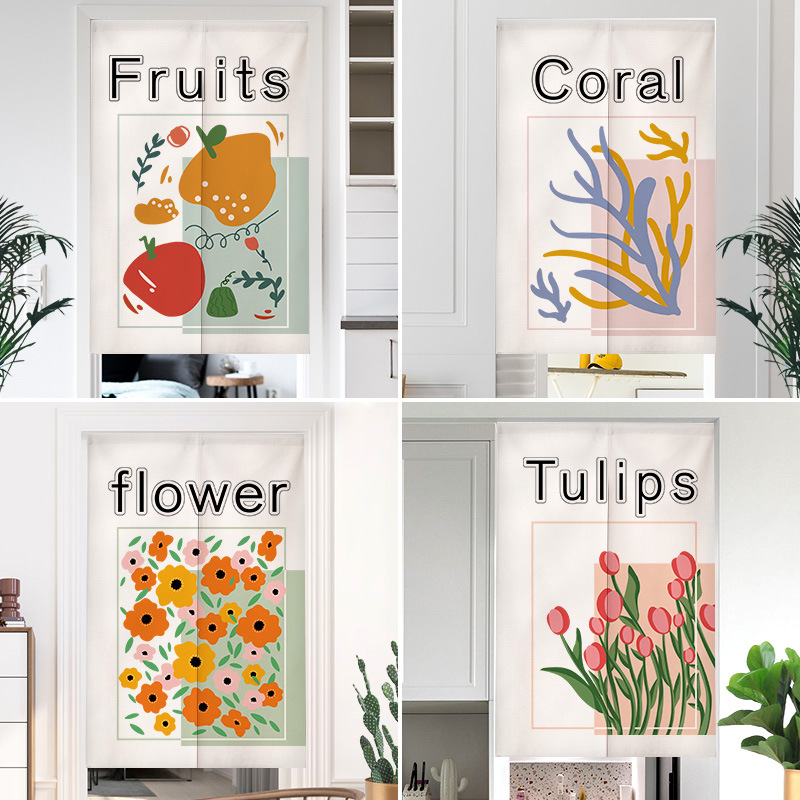 花卉田園風綿麻布芸のれん家庭用ins高格調キッチントイレ遮断カーテン寝室ハーフカーテン