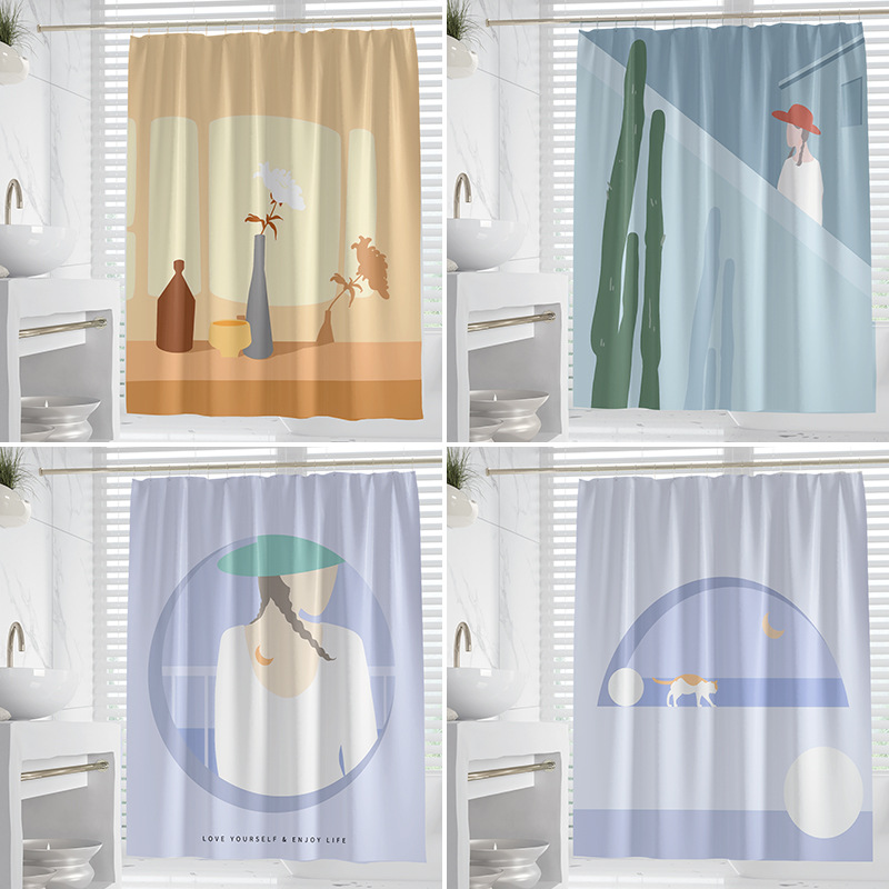 モランディinsシャワーカーテンデジタルプリントポリエステル防水防かび浴室遮断カーテントイレ遮断シャワーカーテン