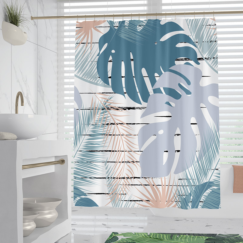 アマゾンクロスボーダー熱売グリーン植物3dデジタルプリント防水防かびポリエステル浴室シャワーカーテン遮断カーテン