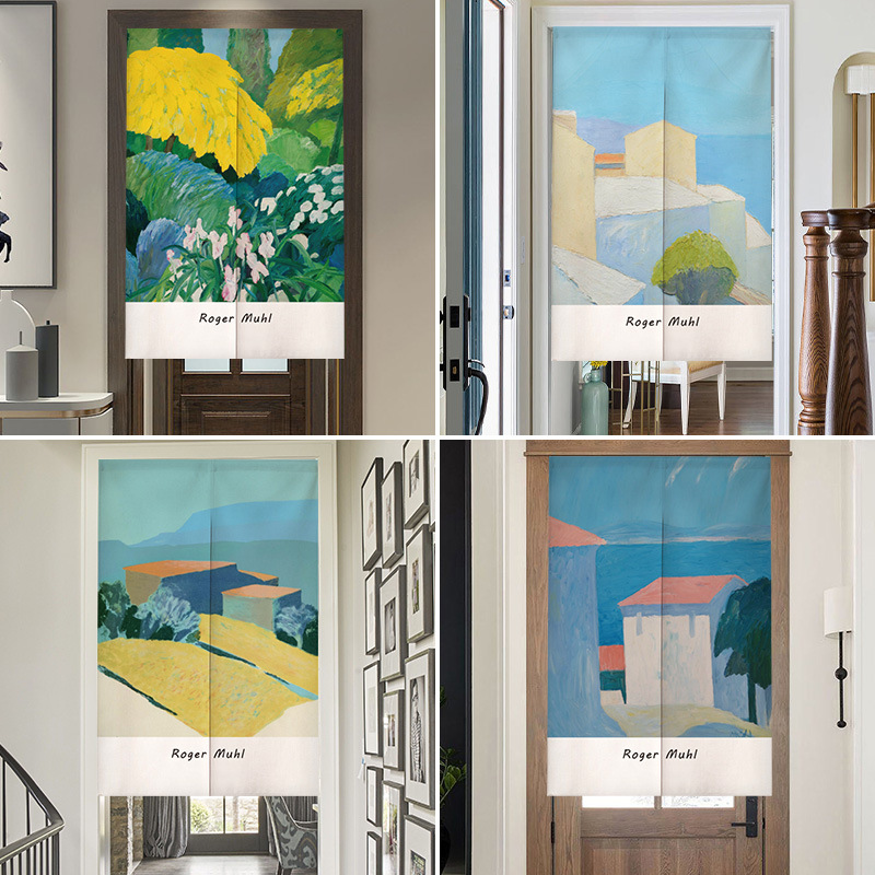 文芸油絵寝室綿麻のれんキッチン油煙防止家庭用遮断カーテン