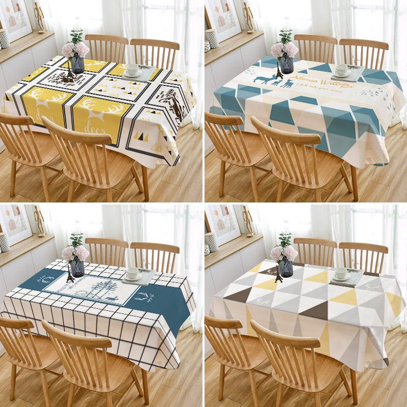 北欧ins風色ブロックテーブルクロス防水茶何テレビキャビネット綿麻布芸長方形テーブルクロス家庭用テーブルマット