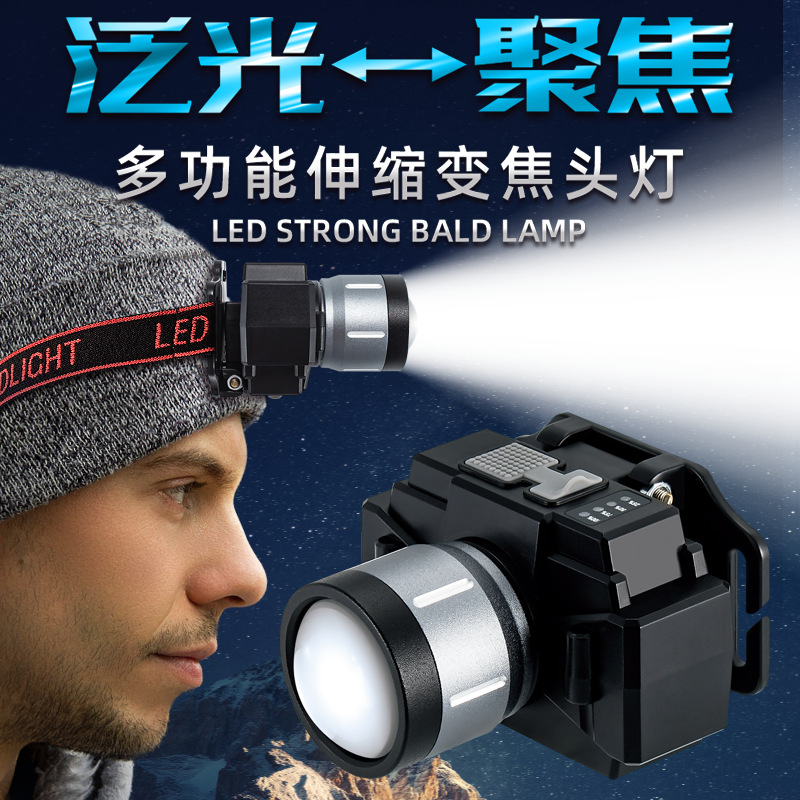 クロスボーダー対外貿易専用多機能強光伸縮ズームヘッドライトアルミニウム合金ランプUSB-Type-c充電