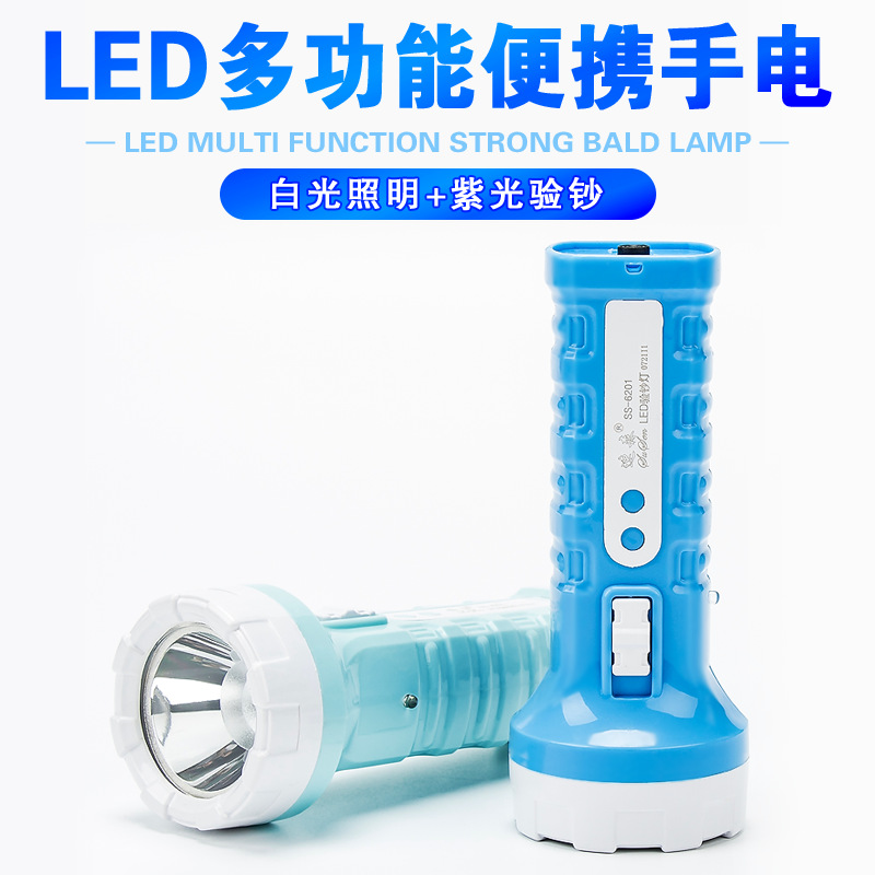新型led強光家庭用充電式懐中電灯には、検札付きの紫光蛍光剤検査ランプのダブル機能照明がついている