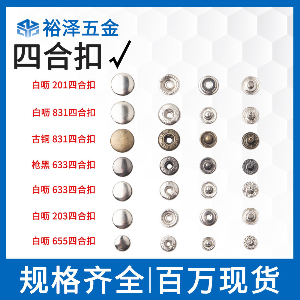 金属スナップボタンメーカー卸売衣類アクセサリーラウンド両面鉄/ステンレス鋼/純銅スナップボタンガン黒銅