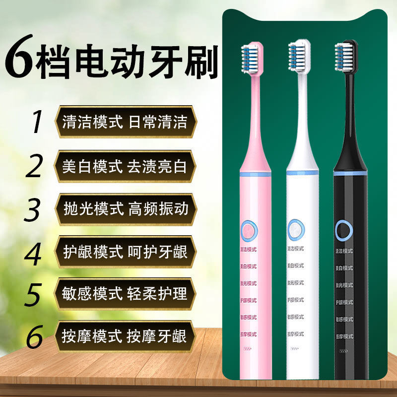 電動歯ブラシ全自動充電可能超音波6段階清潔歯モード防水学生成人家庭用男女