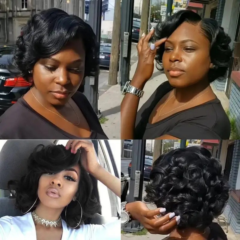 アマゾン欧米のファッション的なかつらのショートヘアの波の頭のネットの赤いハンサムな短い髪は顔の形のかつらの現物を飾ります。