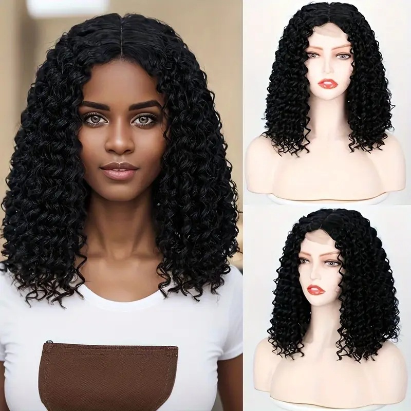 ヨーロッパとアメリカのかつらフロントレースヘッドギア女性のための小さなレースのかつらミドル分けアフリカの小さなカーリーミッドレングスヘッドギアアフロウィッグ