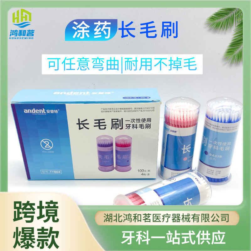 歯科歯科歯科口腔単頭塗布薬長毛ブラシ使い捨てフッ素塗布薬ブラシは100本/箱を曲げることができる