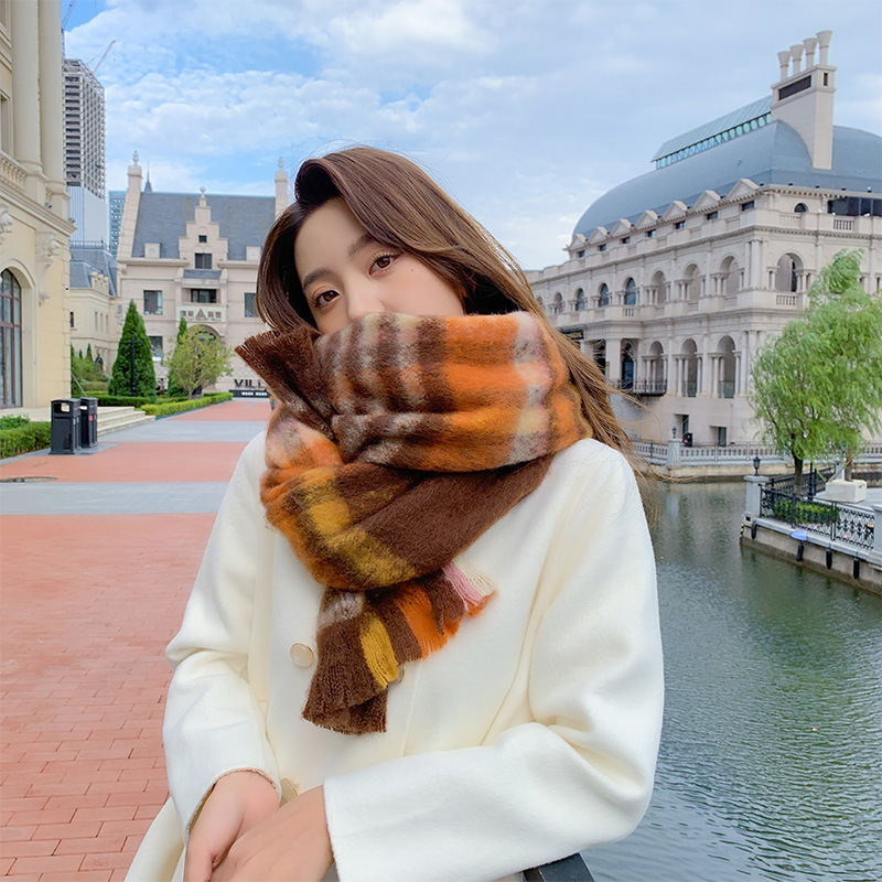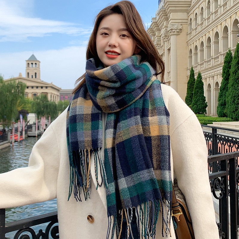 格子のマフラーの女性の冬の2021の新型の韓国版のネットの赤い学生は首を囲んで厚い保温のマントの外で組み合わせます。