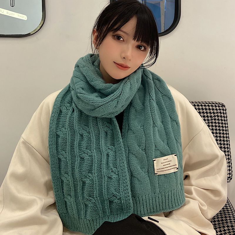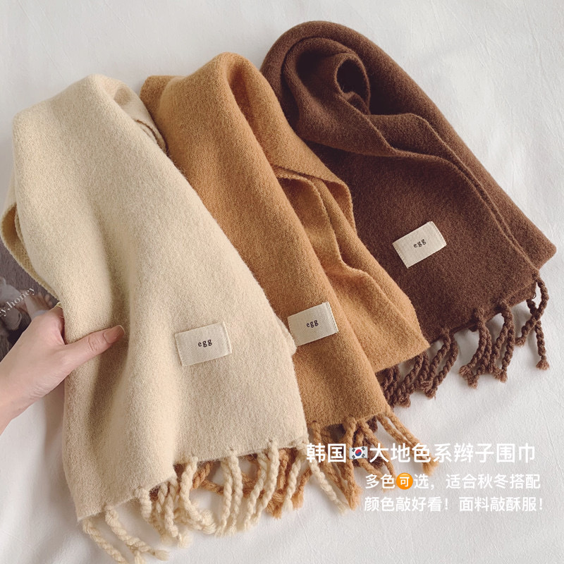 韓国東大門マフラー女性冬保温純色毛糸ニットマフラー日系学生百合潮